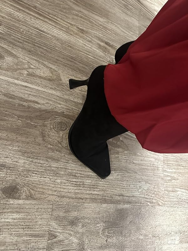 I’m really happy with these ankle boots! They look elegant and match perfectly with jeans, dresses, or skirts. The suede feels soft and good quality, and the heel height is just right. Comfortable to walk in all day. They fit true to size and look even better in person. Definitely a great buy for the price!